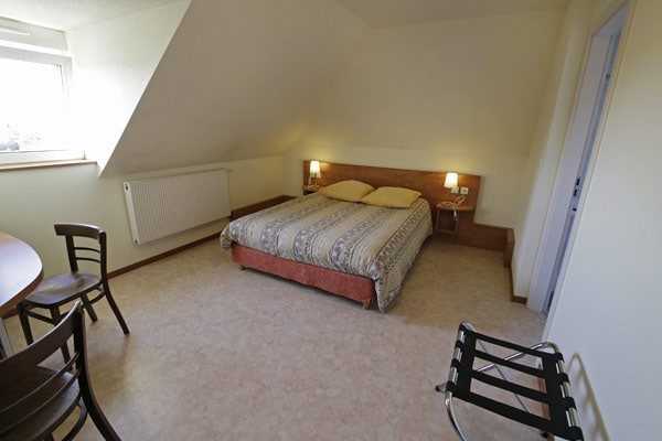 Chambres tout confort avec télévision, connexion ADSL, salle de bain (douche, lavabo, wc, sèche-cheveux), lit deux personnes et un coin bureau.
